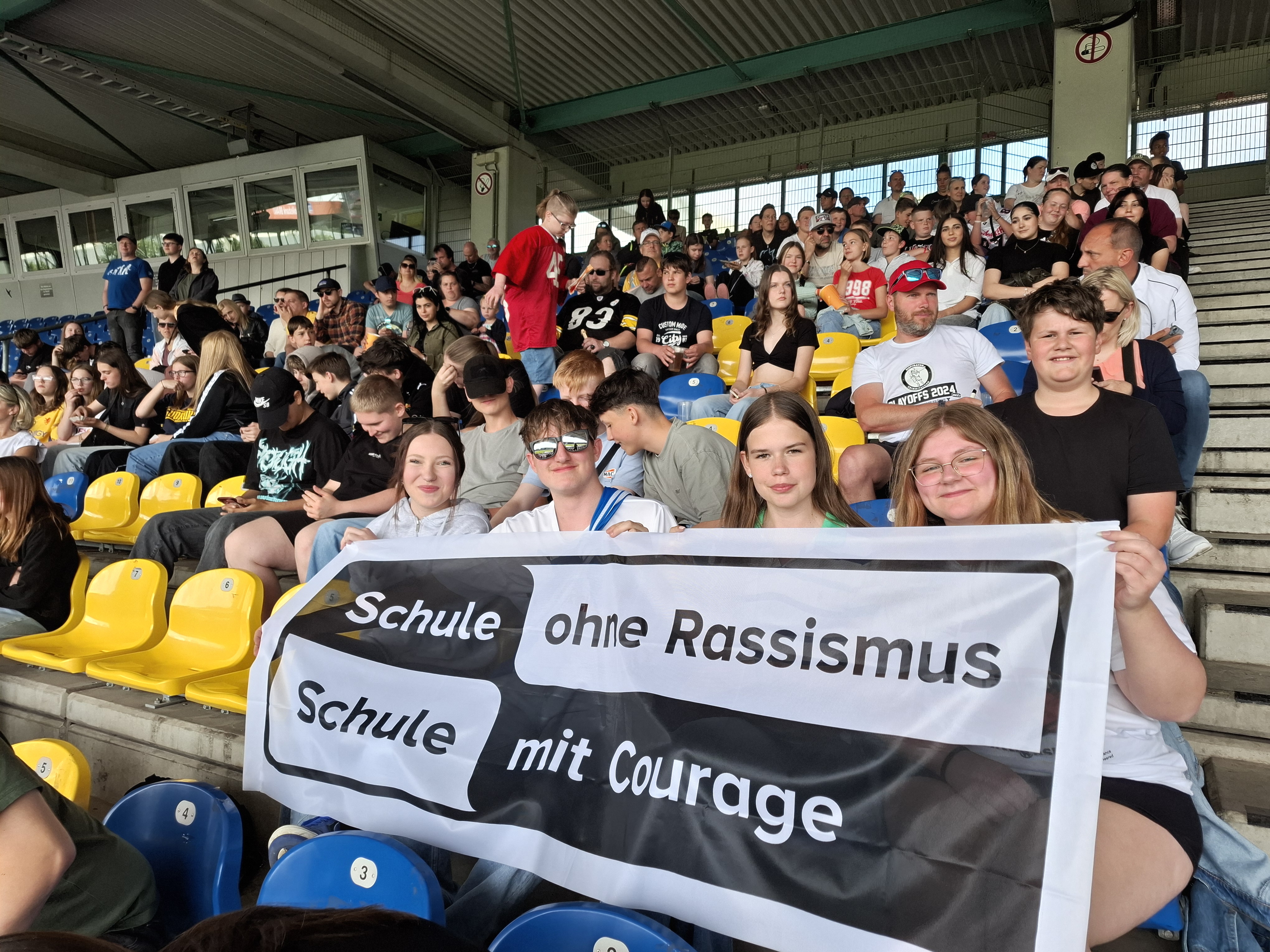 Am 6. März lud Defensive Back Benjamin Krahl von den New Yorker Lions in seinem Grußwort im Rahmen des Projekts "Schule ohne Rassismus - Schule mit Courage" die Schulgemeinschaft der OBS zu einem Football-Spiel ins Eintrachtstadion nach Braunschweig ein. Ein couragiertes Eintreten gegen Rassismus ist unabdingbar im Profisport! Krahl brachte persönlich 300 Karten für das Heimspiel am 8. Juni 2024 gegen die Wildcats Kirchdorf in die Schule. Wir sind gerne gekommen und bedanken uns bei Benjamin Krahl für das Engagement für die Oberschule Sickte!